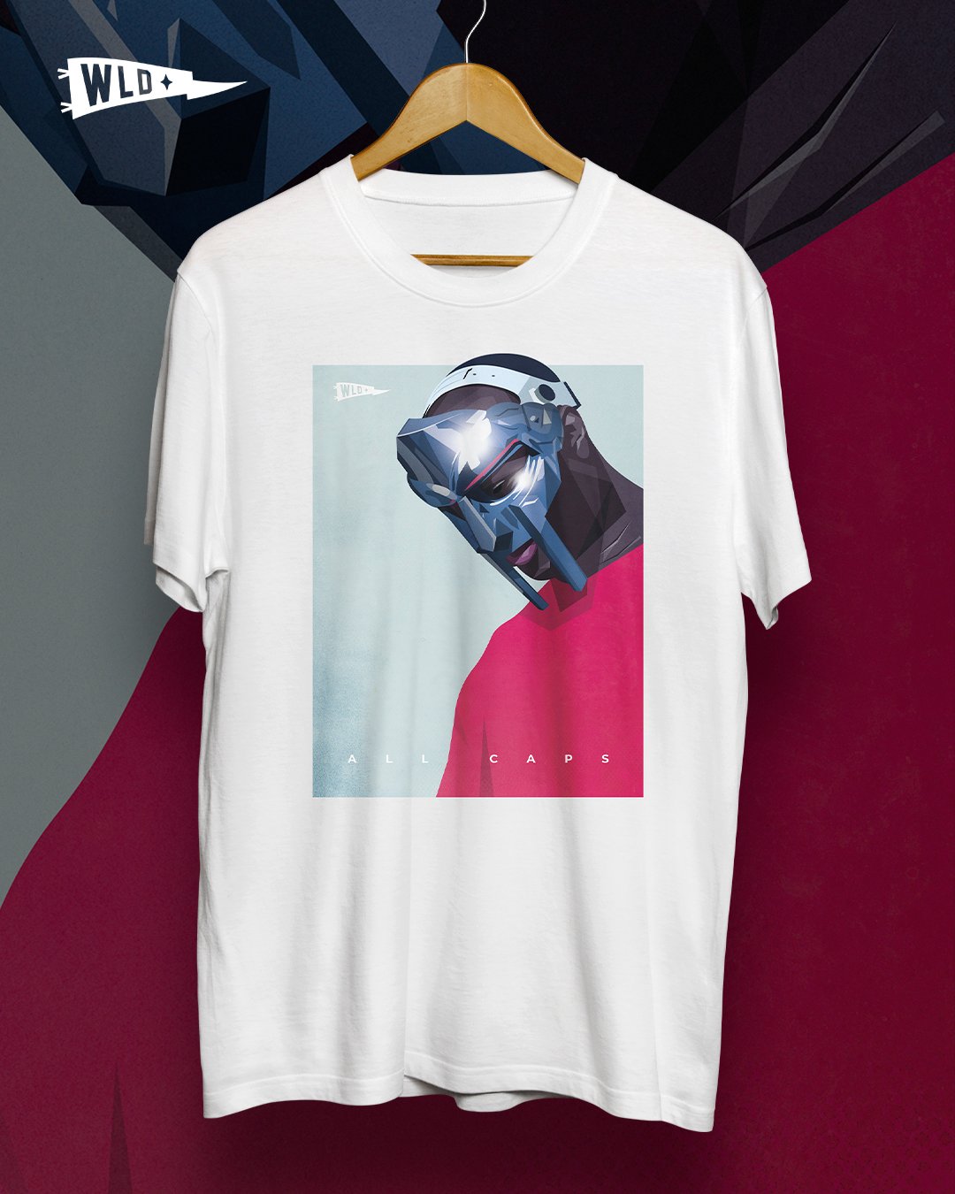 Original illustration of "supervillain" rapper MF Doom - printed in full colour on a retail quality tee