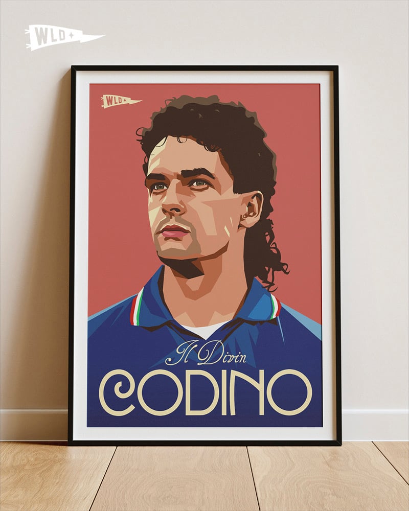 Original illustration of Italian football icon Roberto Baggio - Il Divin Cordino (The Divine Ponytail).